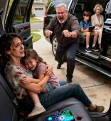 Meu pai surtou por causa da “respiração alta” do meu filho pequeno no carro — minha mãe e minha irmã o apoiaram, até que a polícia gravou o momento em que ele passou dos limites.