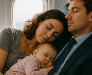 Mãe exausta e seu bebê adormecem no ombro do CEO durante o voo — o que acontece quando ela acorda a deixa sem palavras.