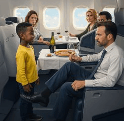 O assento de primeira classe de um menino negro foi roubado por um passageiro branco: “Negros não têm dinheiro para sentar neste assento, desça e sente-se lá” e o final fez o passageiro se arrepender…