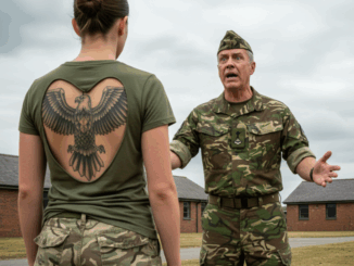 Ela era alvo de piadas no acampamento — e então o comandante ficou paralisado ao ver a tatuagem em suas costas…