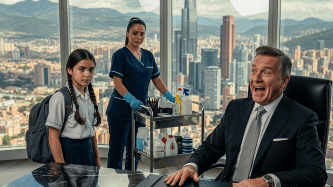 Ele caminhou ao redor deles como um tubarão à espreita, apreciando o terror evidente nos olhos de Carmen e a confusão nos da pequena Lucía. Carmen, conte à sua filha o que a mamãe faz aqui todos os dias, ordenou Ricardo com um sorriso venenoso. Lucía, o senhor sabe, eu limpo os escritórios. Carmen respondeu suavemente, com as mãos agarrando a alça do carrinho até os nós dos dedos ficarem brancos. Exatamente. Limpo. Ricardo bateu palmas sarcasticamente, a voz carregada de desprezo.