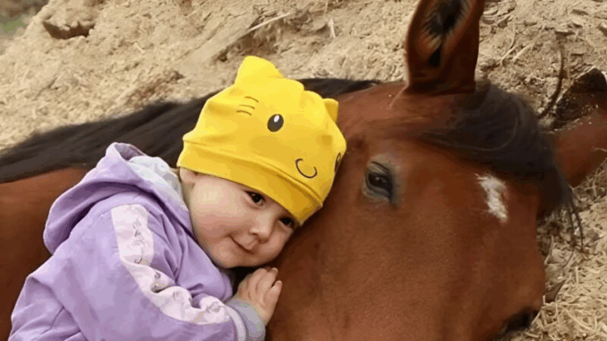Ríamos enquanto os observávamos, mas, no fundo, às vezes nos preocupávamos — afinal, um cavalo é um animal grande. Mas, desde o primeiro encontro, ficou claro: o cavalo era incrivelmente inteligente e gentil, quase como se entendesse que tinha uma criança à sua frente, uma que precisava de carinho especial.