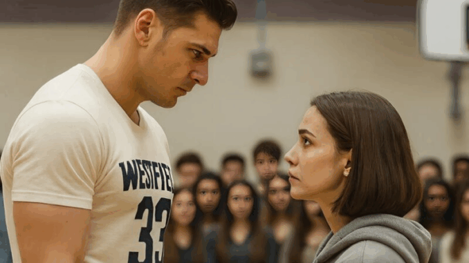 O ginásio ficou em completo silêncio. A garota enfiou a mão no bolso do moletom e tirou um pequeno distintivo de metal. A multidão ficou boquiaberta — o emblema da polícia brilhava sob as luzes.