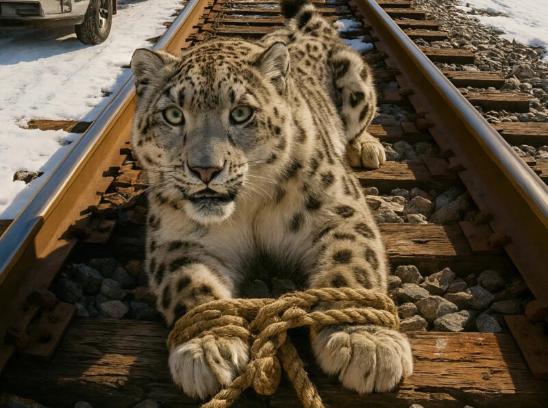 O lince sentiu o chão vibrar, ouviu o estrondo distante do trem se aproximando e começou a se debater nervosamente, tentando desesperadamente escapar. Suas garras arranhavam os dormentes de madeira, sua respiração ficou ofegante, seus olhos se encheram de pânico. Ele sabia — o tempo estava se esgotando.