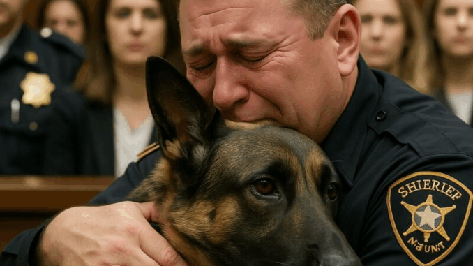 Um murmúrio percorreu a sala. O juiz franziu a testa e olhou para o promotor. Hesitou por um instante, depois assentiu. Alguns instantes depois, a porta se abriu e Rex entrou — um pastor alemão com olhos mais humanos do que os de muitas pessoas. Ele caminhava com determinação, como se soubesse que aquele não era um dia comum.