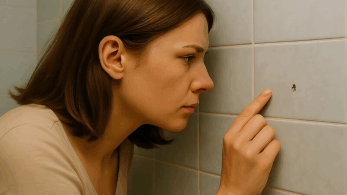 Alguns dias depois, enquanto limpava o banheiro, a mulher notou um pequeno buraco na parede. A princípio, pensou que fosse apenas uma rachadura ou uma lasca. Mas, ao examinar mais de perto, percebeu que o buraco era perfeito demais, como se tivesse sido feito com uma ferramenta especial. E o mais importante: o buraco definitivamente não existia antes.