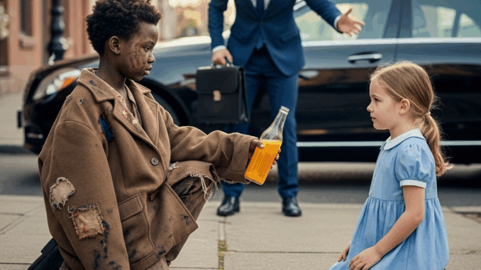 Do outro lado da praça, estava uma garota da sua idade. Sua pele escura brilhava de suor, suas roupas rasgadas e sujas, seus pés descalços empoeirados do asfalto. Em suas mãos, ela segurava uma pequena garrafa de vidro cheia de um líquido dourado e espesso. Apesar da pobreza, os olhos da garota transmitiam determinação, como se guardasse um tesouro.
