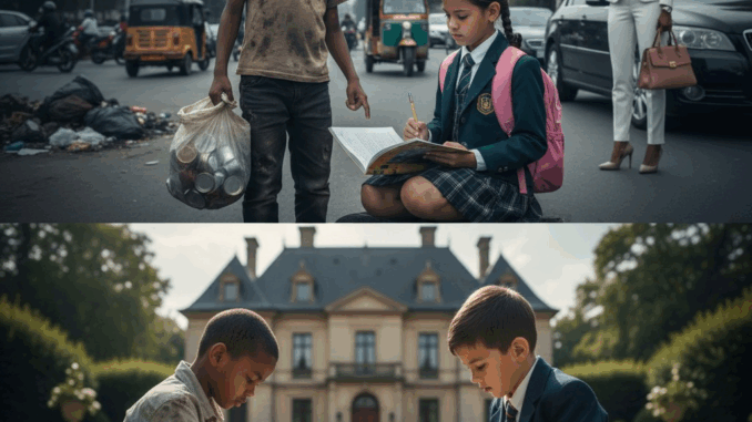 Bilionário vê menino sem-teto ensinando sua filha — o que ela fez em seguida deixou todos sem palavras
