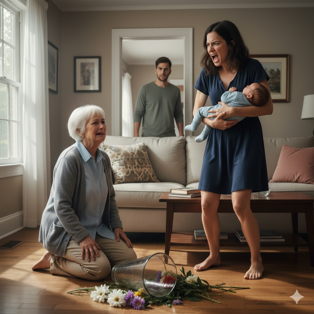 Corri para a sala de estar, com o coração disparado. O que vi fez meu sangue gelar. Martha estava no chão, com o rosto vermelho de dor e vergonha. As flores que ela carregava estavam espalhadas pelo piso de madeira, a água formando uma mancha escura. Everly estava em pé ao lado dela, segurando nosso neto, com o rosto contorcido de desgosto.