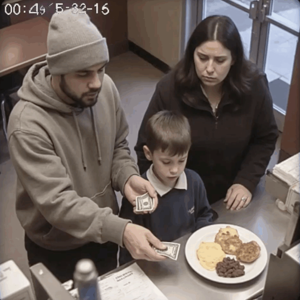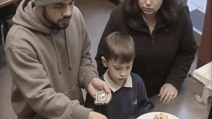 Momentos depois, uma mãe e seu filho pequeno entraram. Aproximaram-se do balcão com olhares esperançosos e cinco dólares amassados nas mãos, pedindo o café da manhã especial. “Isso não é suficiente”, disse o caixa secamente, dispensando-os com um gesto de desdém. O rosto do menino se fechou, e os ombros da mãe se curvaram enquanto eles se viravam para ir embora.