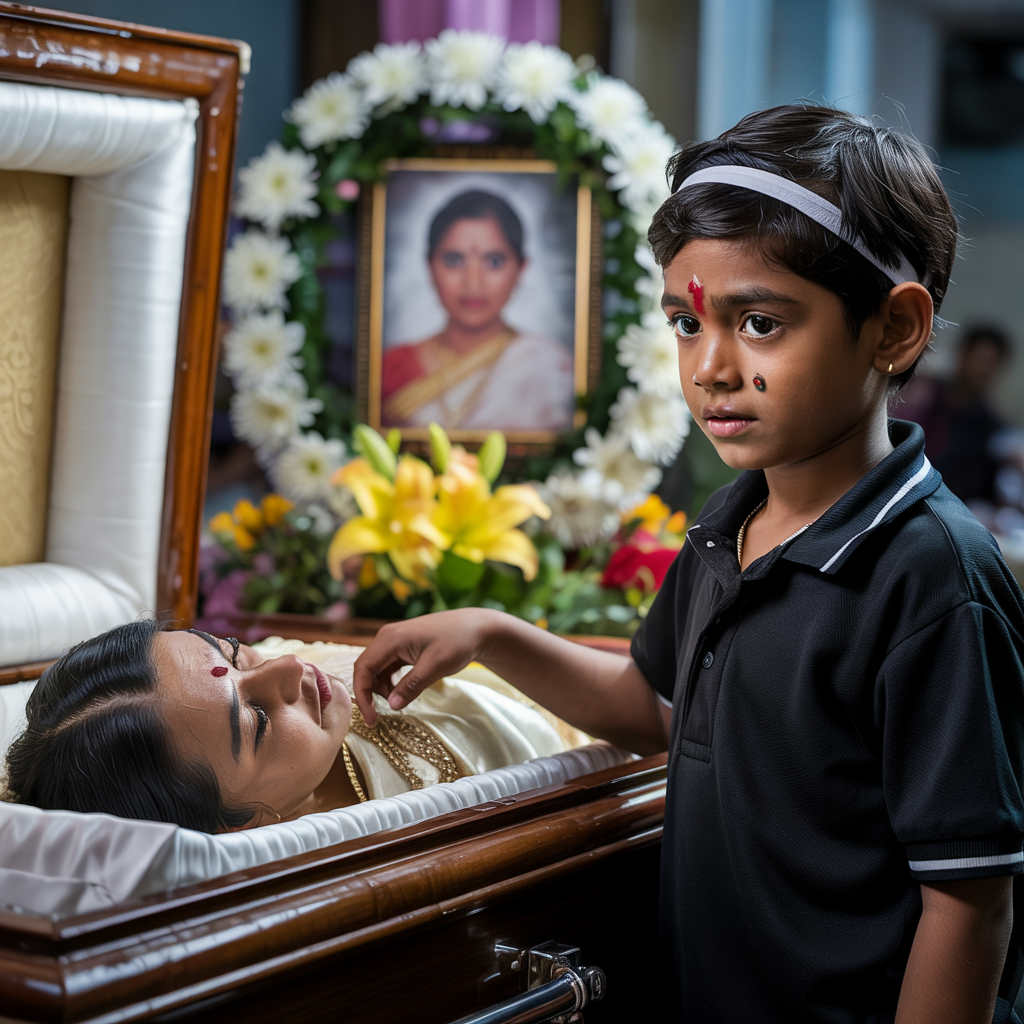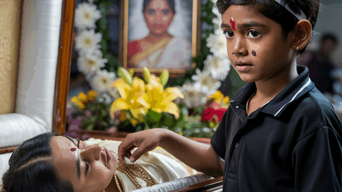 O funeral transcorreu rapidamente, de acordo com os costumes da aldeia. A fumaça do incenso se misturava a soluços de cortar o coração. Sua pequena casa estava imersa em luto. Arjun sentou-se em silêncio, com os olhos fundos, segurando um pano de luto. Seus filhos — do mais velho ao mais novo — ajoelharam-se ao lado do caixão. Entre eles estava o pequeno Aryan, o caçula, de apenas cinco anos. Jovem demais para compreender a morte por completo, mas seus olhos cheios de lágrimas percorriam o local como se procurassem por algo.
