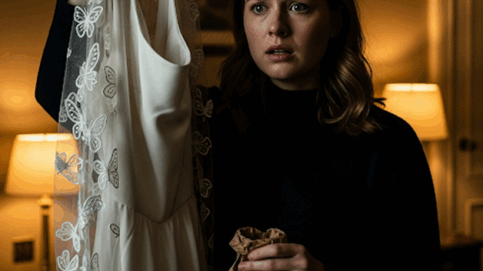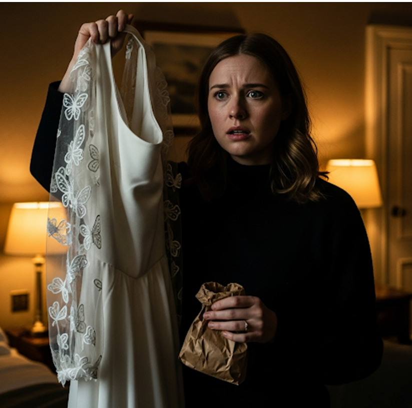 Mas na noite anterior ao meu casamento, enquanto eu passava o vestido a vapor e verificava se havia rugas… senti um puxão. Dentro do forro, perto da bainha, havia algo costurado de forma estranha. Um caroço. Pequeno. Achatado.