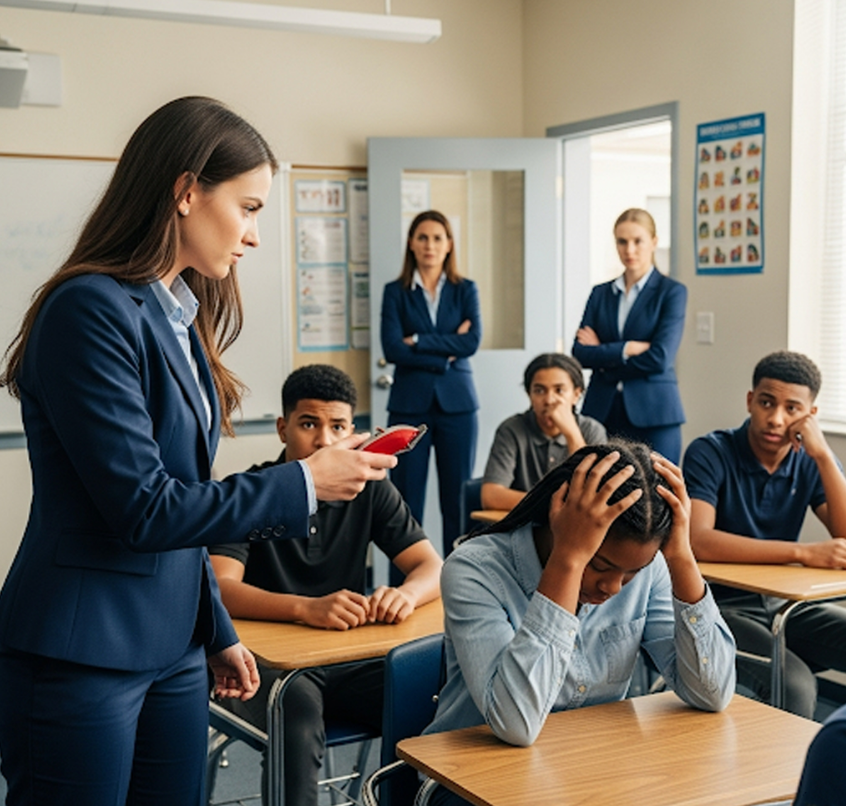 A sala de aula estava em silêncio. Um garoto no fundo sussurrou: “Isso é uma loucura”, mas ninguém ousou falar mais alto. Courtney escondeu o rosto entre as mãos.