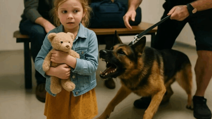 “O que você está fazendo?!” gritou a mãe, protegendo a filha com força e puxando-a para perto. “Tire o cachorro daqui!”