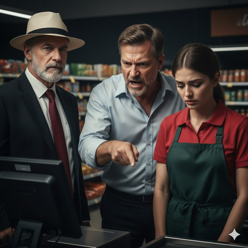 Ninguém a reconheceu, mas o que ele viu na fila foi pior do que imaginava. A jovem caixa, de no máximo 23 anos, tinha os olhos vermelhos. Suas mãos tremiam enquanto examinava os produtos. Ernesto notou como ela tentava sorrir para os clientes, mas algo em sua expressão indicava que ela estava arrasada por dentro. Foi nesse momento que o gerente, um homem de terno e gravata com voz arrogante, caminhou rapidamente até ela e começou a gritar com ela, sem se importar com quem o visse.