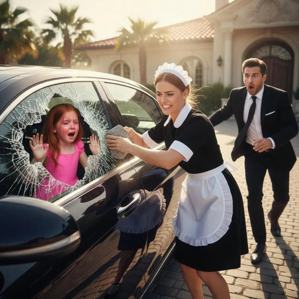 A empregada correu ao redor do carro, procurando por uma rachadura, um erro, qualquer oportunidade. Mas o luxo do veículo havia se tornado uma armadilha perfeita: a blindagem era inquebrável. Lá dentro, o corpo frágil de Sophie desabou lentamente contra o assento.