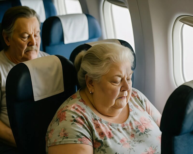 A mulher limpou silenciosamente a bolsa, e o assento… permaneceu na posição vertical durante o resto do voo.