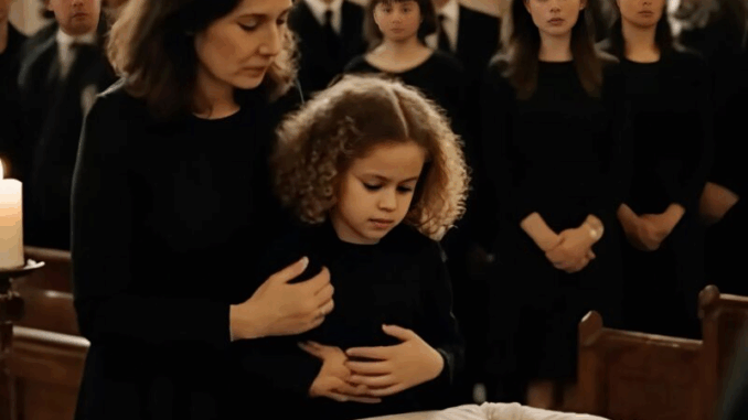 Ao lado do caixão estava a mãe, segurando a mãozinha da filha. A menina permanecia em silêncio, os cabelos cacheados caindo sobre o rosto. Desde a tragédia, ela mal havia falado, e todos pensavam que a criança não entendia o que tinha acontecido.