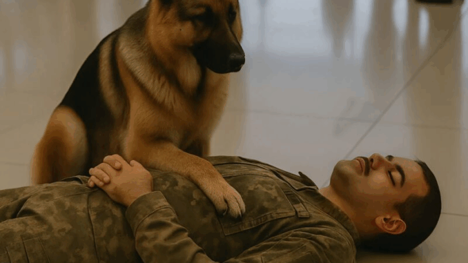No chão, sobre os azulejos frios, jazia um jovem de uniforme militar. Seu rosto estava pálido, os olhos fechados. Ao lado dele, sentava-se um grande e forte pastor alemão com um olhar alerta. O cão permanecia imóvel, mas observava atentamente todos que passavam. Sempre que alguém se aproximava, ele se levantava e começava a rosnar. Não atacava, mas sinalizava claramente: “Não se aproxime”.