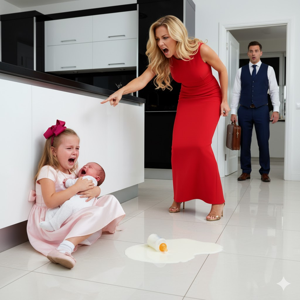 Ali, no chão frio, estava Lily — tremendo, abraçada ao irmão, os grandes olhos cheios de terror. Atrás dela estava Clara, com a mão erguida, o rosto pálido de choque. A garrafa de leite quebrada jazia entre elas como prova de algo que ele se recusara a ver por tempo demais.