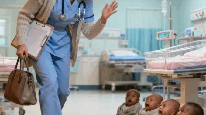 Eram 3h57 da manhã no Hospital St. Mary’s, em Chicago, quando Vanessa ouviu o som pela primeira vez — não um, mas quatro choros de recém-nascidos se misturando em um coro desesperado. As luzes fluorescentes zumbiam sobre sua cabeça enquanto ela corria em direção ao berçário, com o coração já afundando. No quadro perto dos berços, ela viu as etiquetas: Bebê A , Bebê B , Bebê C , Bebê D. Sem nomes. Sem pais à espera. Apenas silêncio além do vidro.