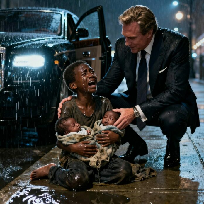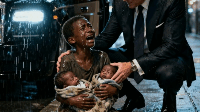 Em meio a uma chuva torrencial, um bilionário encontrou um menino sem-teto segurando dois bebês — a verdade partiu seu coração…