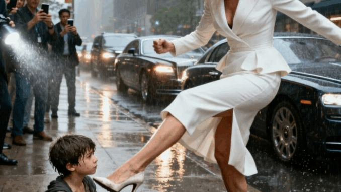 Murmúrios de choque percorreram a multidão. As câmeras dispararam. Isabella Reed — ícone da moda, filantropa — flagrada em vídeo empurrando uma criança sem-teto.