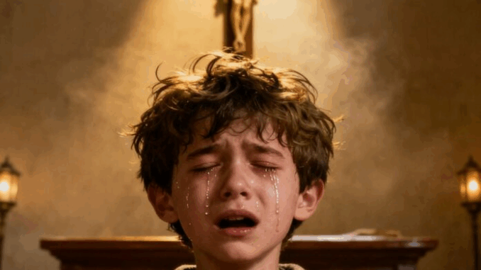 Naquela tarde, enquanto a luz do sol entrava pelas janelas de vitral, as emoções de Alan se tornaram insuportáveis. Ele soluçou alto, com os ombros tremendo. “Por que ela não volta… Por quê?”
