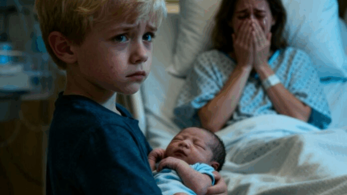 Após uma pausa, o Dr. Miller acenou para a enfermeira deixá-lo entrar. Ethan caminhou até a cama, subiu na cadeira ao lado da mãe e olhou para o bebê envolto em branco. Seus lábios tremeram. “Ele é tão pequeno”, sussurrou. Então, com cuidado, estendeu os braços. A enfermeira hesitou, mas acabou permitindo que ele segurasse o pequeno.