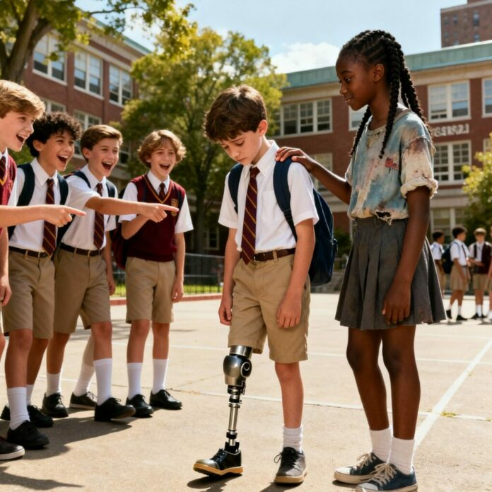 Leo Thompson tinha doze anos e era o único filho de Thomas Thompson, um magnata bilionário do ramo imobiliário em Nova York. Apesar da fortuna que o cercava, a vida de Leo na Lincoln Preparatory, uma das escolas de elite de Manhattan, estava longe de ser fácil. Ele era conhecido não por sua inteligência ou charme, mas por sua perna protética. Cada clique metálico a cada passo o tornava alvo de apelidos cruéis: “Garoto Robô”, “Meio-Garoto”, “Homem de Metal”. Cada eco nos corredores carregava o ridículo, fazendo-o se encolher na sombra da riqueza da qual jamais conseguiria escapar.