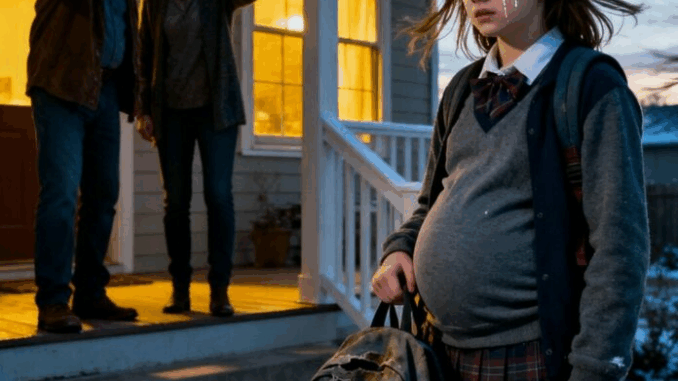 Aos quatorze anos, Emily Parker jamais imaginou que um único momento pudesse destruir seu mundo. Naquela tarde de novembro em Dayton, Ohio, ela estava sentada na varanda da frente de sua casa, sua pequena mochila aos pés, o coração disparado. O vento cortava o bairro tranquilo, trazendo o cheiro de folhas queimadas e escapamento distante. Dentro de casa, sua mãe, Karen, segurava o teste de gravidez que Emily tentara esconder, a tira branca tremendo em sua mão como um veredicto.