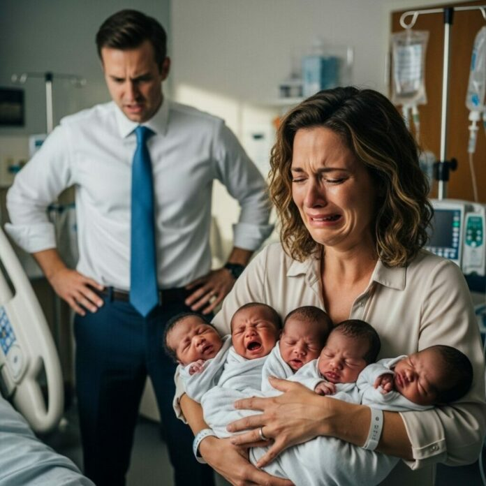 Duas semanas depois, Emily recebeu alta com cinco bebês e ninguém esperando do lado de fora. Ela os carregou sozinha pelas portas do hospital para um mundo frio e cheio de julgamentos.