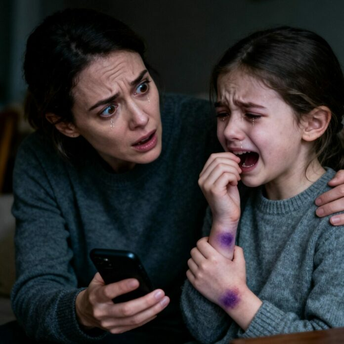 “Minha filha”, disse Laura, com a voz trêmula. “Ela está com hematomas. Ela está apavorada. Acho que alguém está machucando ela, mas ela não me diz quem.”