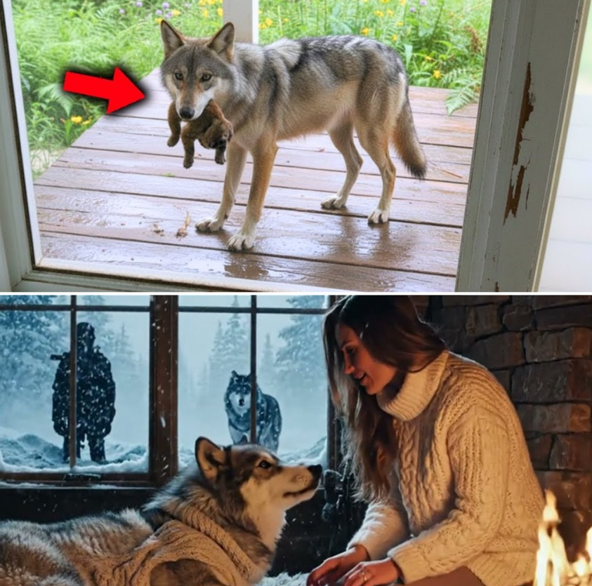 Uma mulher deu comida a um lobo faminto. Três dias depois, encontrou-o à sua porta com uma surpresa. Ela pensou que o animal selvagem nunca mais voltaria, mas agora, na quietude da neve, pegadas circulavam sua varanda, seguidas por pegadas menores. Quando abriu a porta, o mesmo lobo estava lá, com os olhos brilhando ao amanhecer.