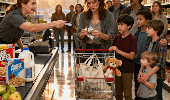 Mas o menino de quatro anos não entendia isso. Ele começou a chorar alto, o que chamou a atenção de alguns dos clientes. “Não, mamãe! Eu quero! EU QUERO DOCE!”
