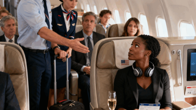 As palavras ressoaram com arrogância, ricocheteando nos assentos de couro, ecoando no silêncio que os passageiros fingiam não quebrar. Um empresário baixou levemente seu exemplar do Wall Street Journal. Uma jovem com fones de ouvido congelou a tela, os olhos percorrendo o olhar. Cada olhar dizia a mesma coisa: estamos assistindo.