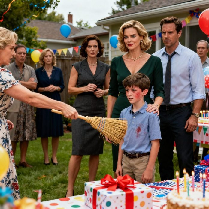 Meu ex-marido apareceu na festa de aniversário do nosso filho com a nova esposa. Ela entregou uma vassoura para o meu filho e disse: “Vai ajudar a sua mãe a limpar, é isso que você tem que fazer”. Meu filho olhou para mim, com as bochechas coradas de vergonha. Eu não disse uma palavra… até ele desembrulhar o último presente. E no instante em que ela viu o que tinha dentro, empalideceu.