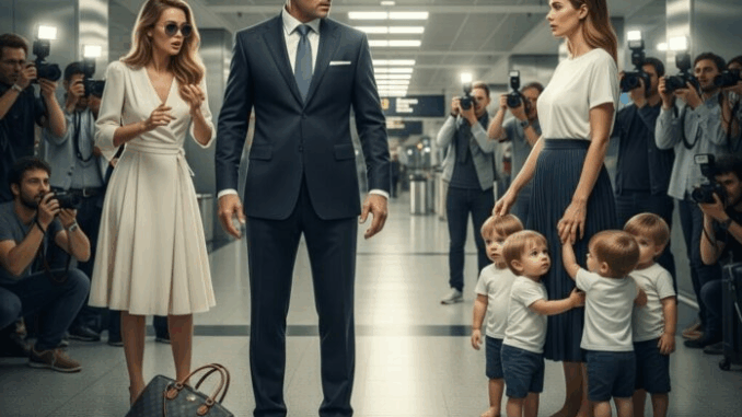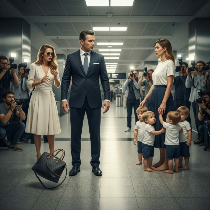 No aeroporto, bilionário carregava as malas da amante como um cavalheiro — até que sua esposa entrou com quadrigêmeos…