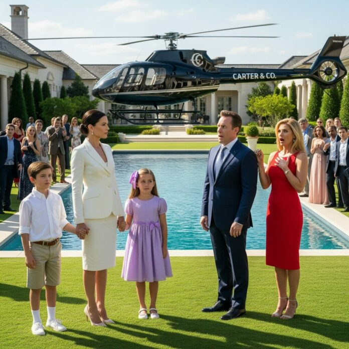 Quando o helicóptero desceu perto da propriedade dos Whitaker, onde Michael e Rachel ofereciam um brunch luxuoso à beira da piscina, o rugido das hélices silenciou a conversa. Os convidados protegiam os olhos do vento, a curiosidade brilhando em seus murmúrios.