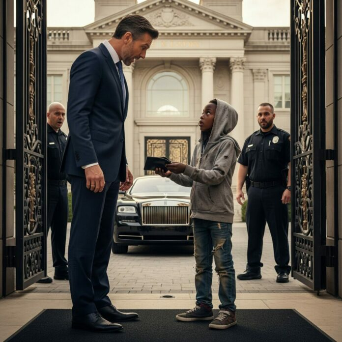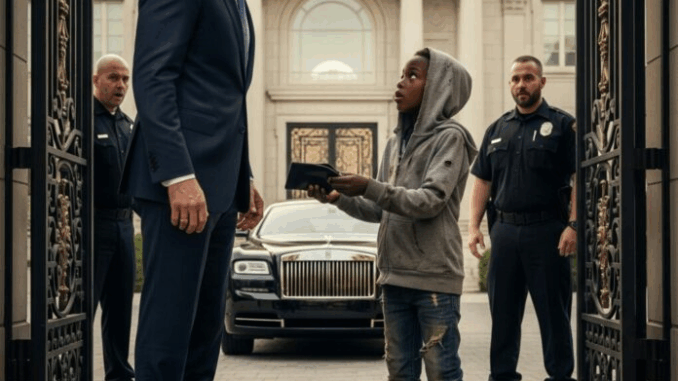 Horas depois, após caminhar até as pernas doerem, Marcus parou nos portões da propriedade do bilionário. Os seguranças olharam para suas roupas esfarrapadas com desgosto.