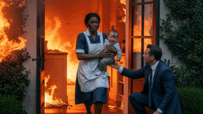 Richard sentou-se ao lado deles, suas mãos trêmulas estendendo-se para o filho. Mas seus olhos não conseguiam se desviar da criada que arriscara tudo. A mansão ardia em chamas atrás deles, mas naquele instante, a única coisa que importava era a vida que ela carregava para fora do fogo.