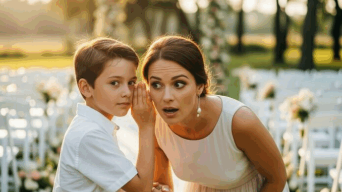 Conforme a hora da cerimônia se aproximava, Caroline tentava apreciar a decoração, a música, a alegria ao seu redor. Mas seu filho, Aiden, de sete anos, não parava de puxar sua manga.