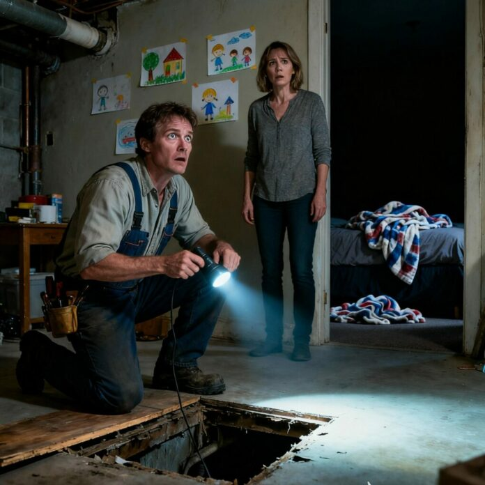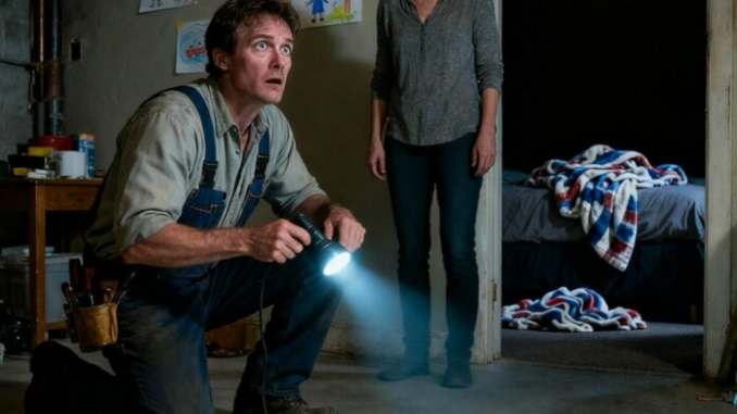 Ele hesitou, depois expirou trêmulo. “O painel do porão estava aberto e ouvi movimento. Não eram ratos. Movimento lento… cuidadoso. Pensei que talvez seu marido estivesse em casa, mas então encontrei um cobertor, embalagens de comida e uma pilha de suas correspondências.”