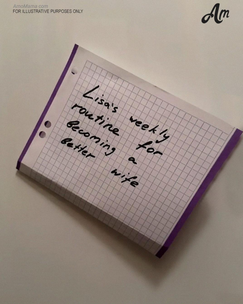 Encarei o papel à minha frente. Era uma agenda… e ele havia escrito “Rotina Semanal de Lisa para se Tornar uma Esposa Melhor” no topo, em negrito.