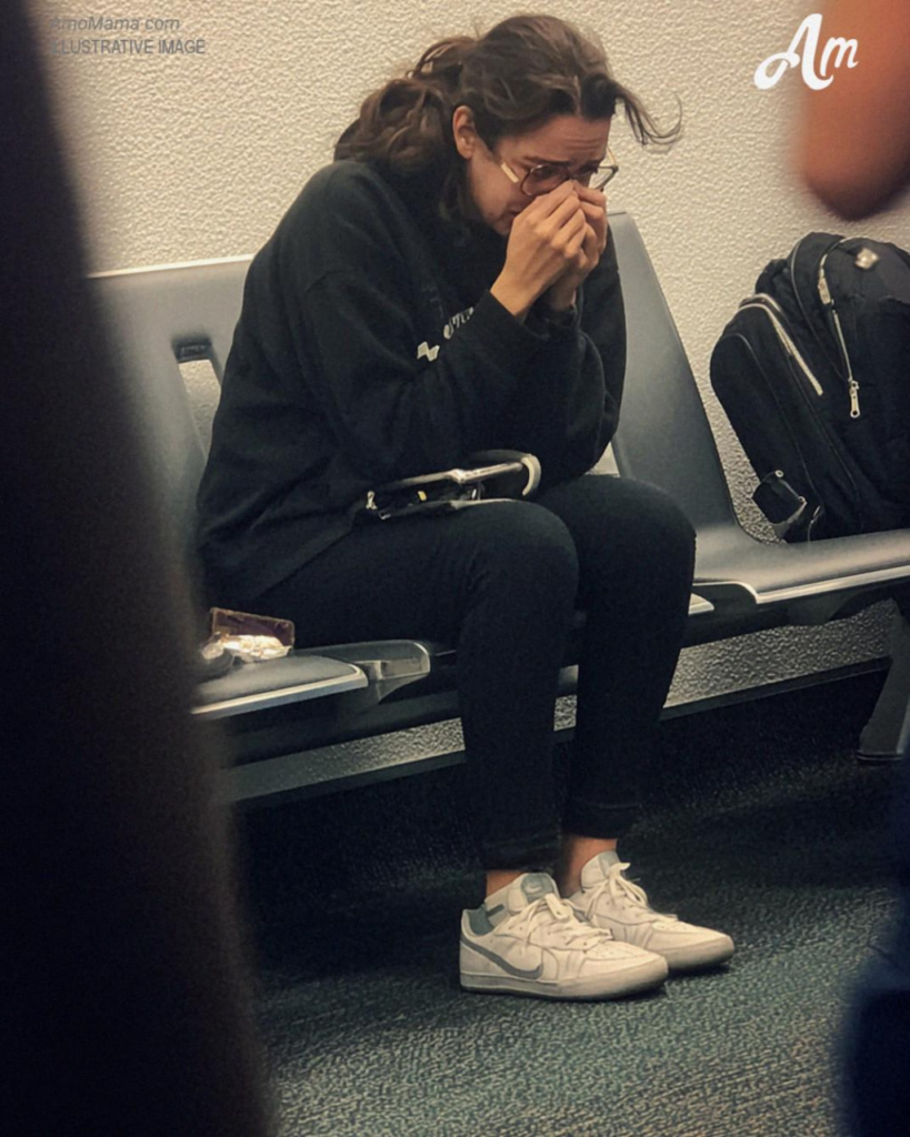 Ela estava sentada no chão perto de uma enorme janela com vista para a pista, as costas contra a parede, os joelhos encolhidos junto ao peito. Agarrava uma bolsa de couro marrom como se fosse a única coisa que a mantivesse presa à terra, e chorava. Era um soluço cru e dilacerante que fazia seu corpo inteiro tremer.