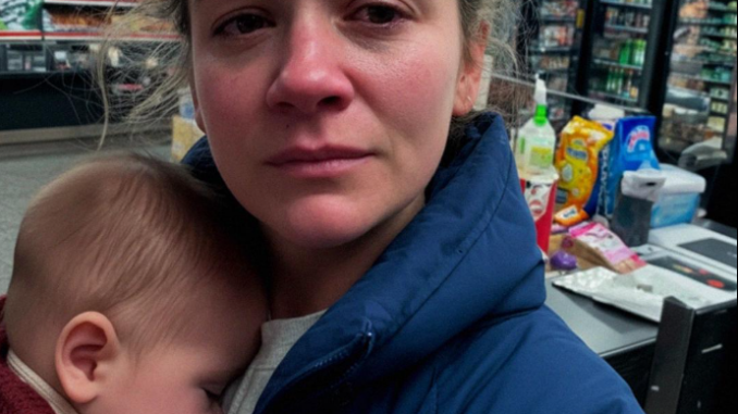 “Faltam-me quatro dólares”, sussurrou ela. “Posso… posso devolver as fraldas?”
