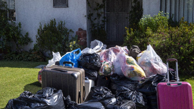 As crianças correram até mim, cada uma agarrando uma das minhas pernas. Alice olhou para cima, com os olhos arregalados e assustados. “Mamãe, por que nossas coisas estão lá fora?”
