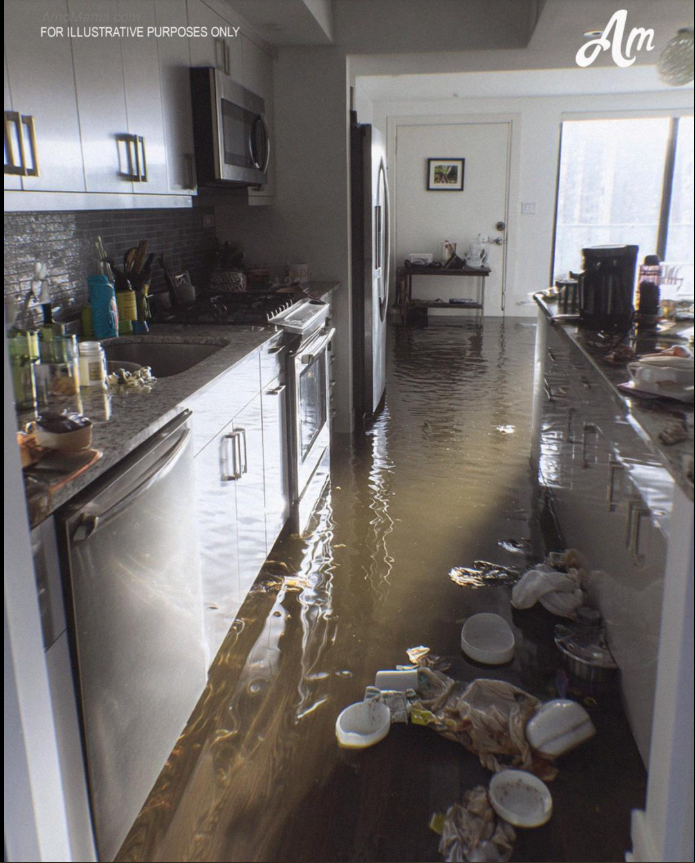 Todos os armários embaixo da pia estavam arruinados. A água deformou a madeira e destruiu tudo o que tínhamos guardado lá. Eu conseguia ver a água se espalhando em direção à sala de estar, e tudo o que eu conseguia pensar era em como iríamos pagar por isso.