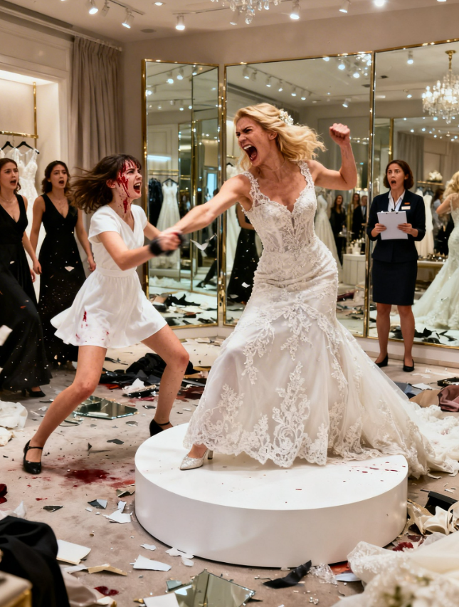 Não foi uma bronca. Nem um aviso sobre o preço. Nem um comentário sobre como o corpete sem alças poderia escorregar se ela dançasse com muita energia. Apenas uma sugestão para experimentar um segundo vestido antes de fechar a maior compra da vida dela — uma compra que eu estava financiando.